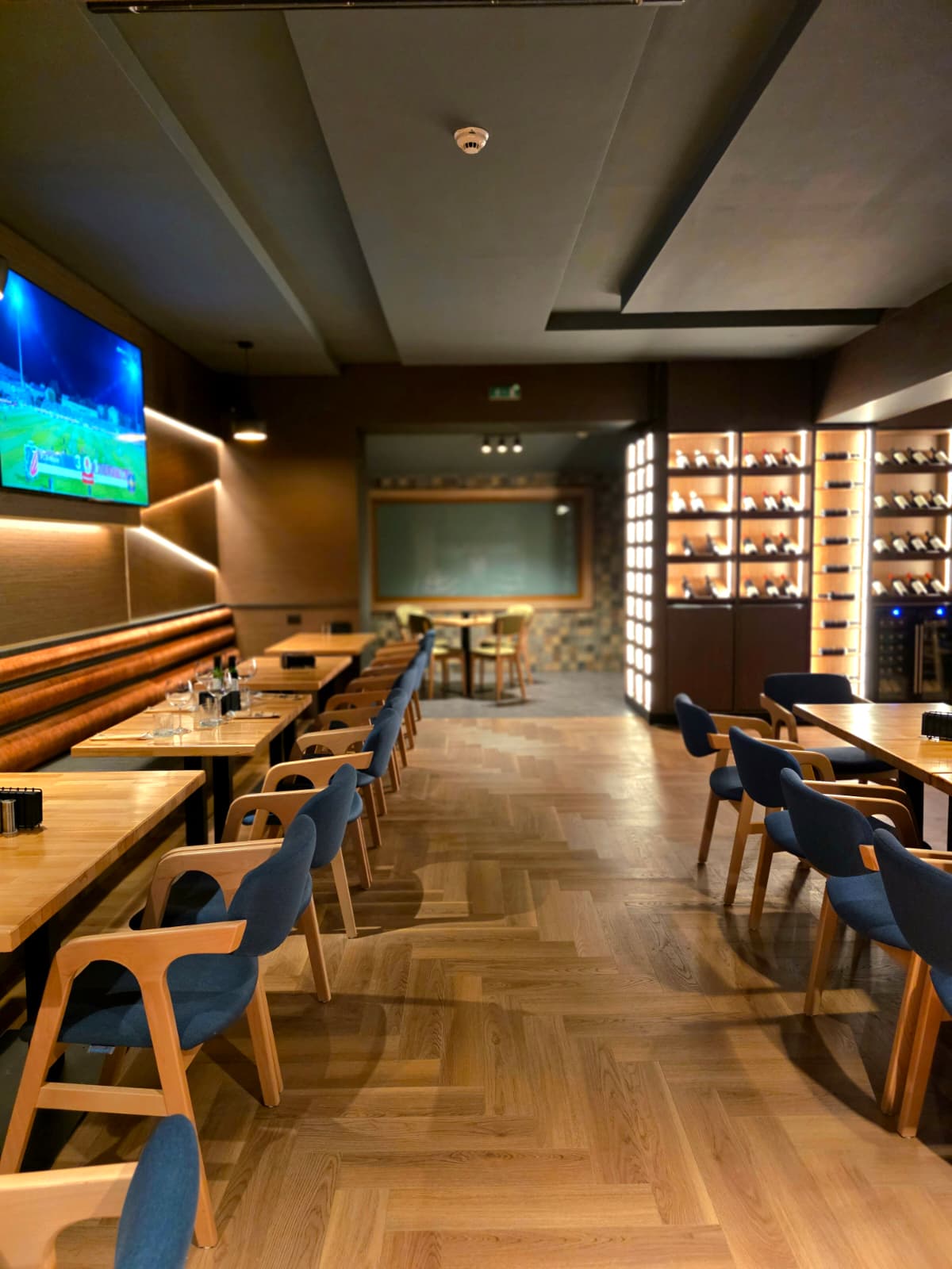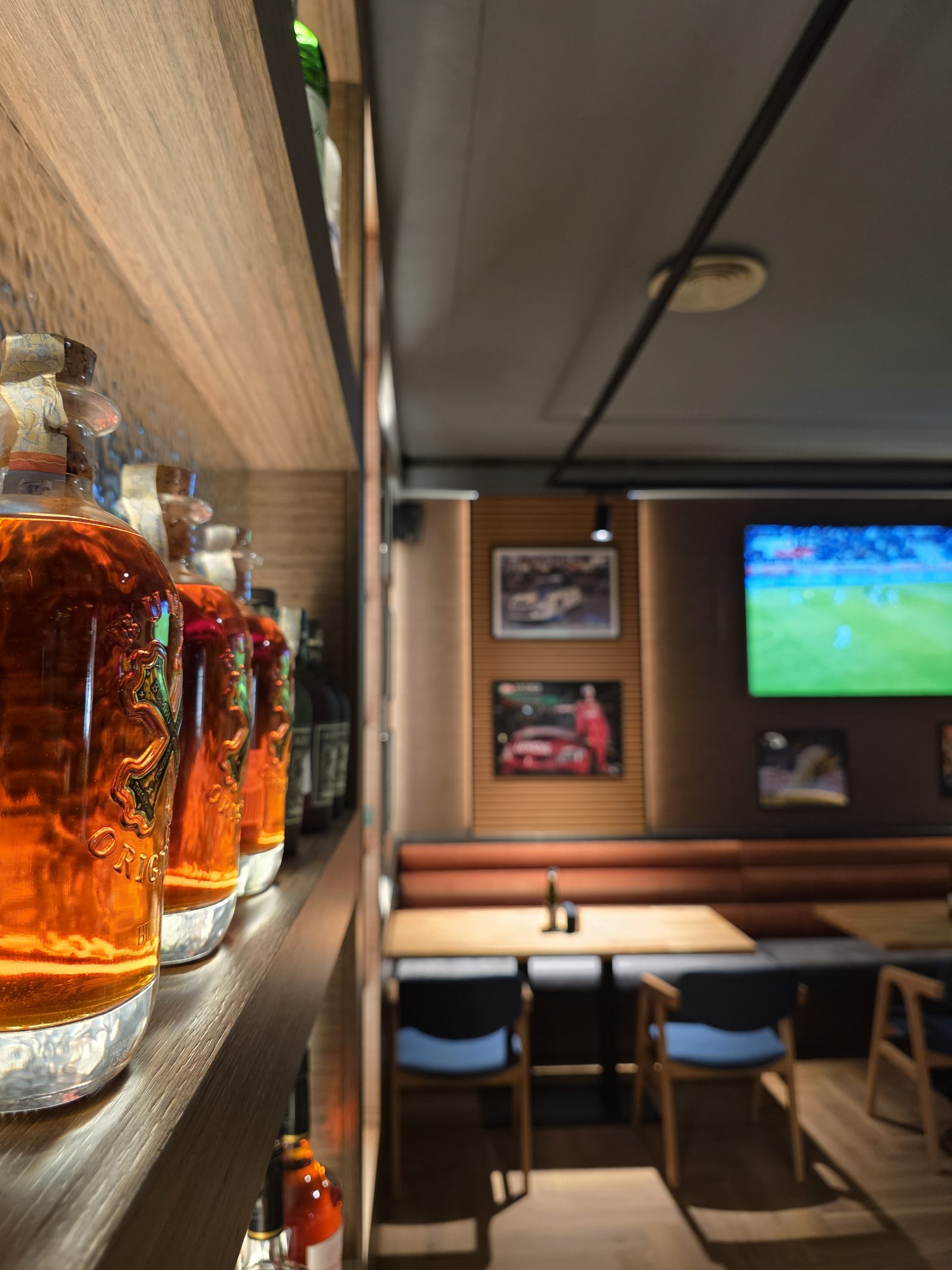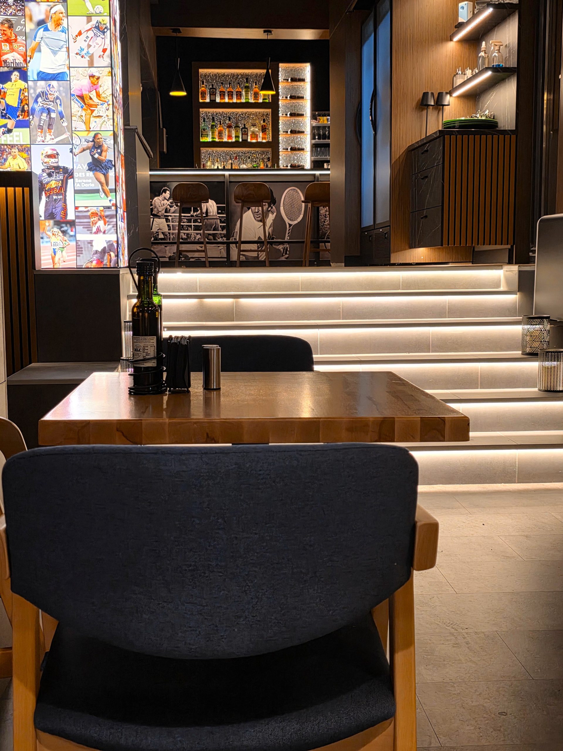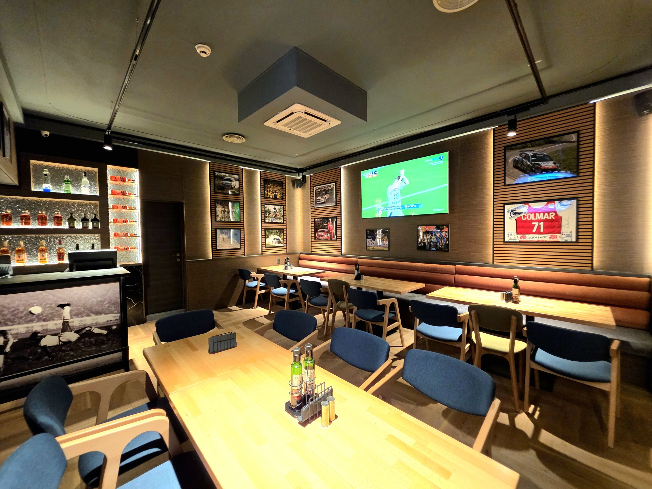 Localul nostru are o capacitate generoasă de 150 de persoane, fiind ideal atât pentru seri relaxate cu prietenii, cât și pentru evenimente private sau întâlniri de afaceri. Interiorul este decorat cu elemente care celebrează pasiunea pentru sport, iar atmosfera este mereu animată, dar caldă – exact cum trebuie să fie într-un pub unde te simți ca acasă.